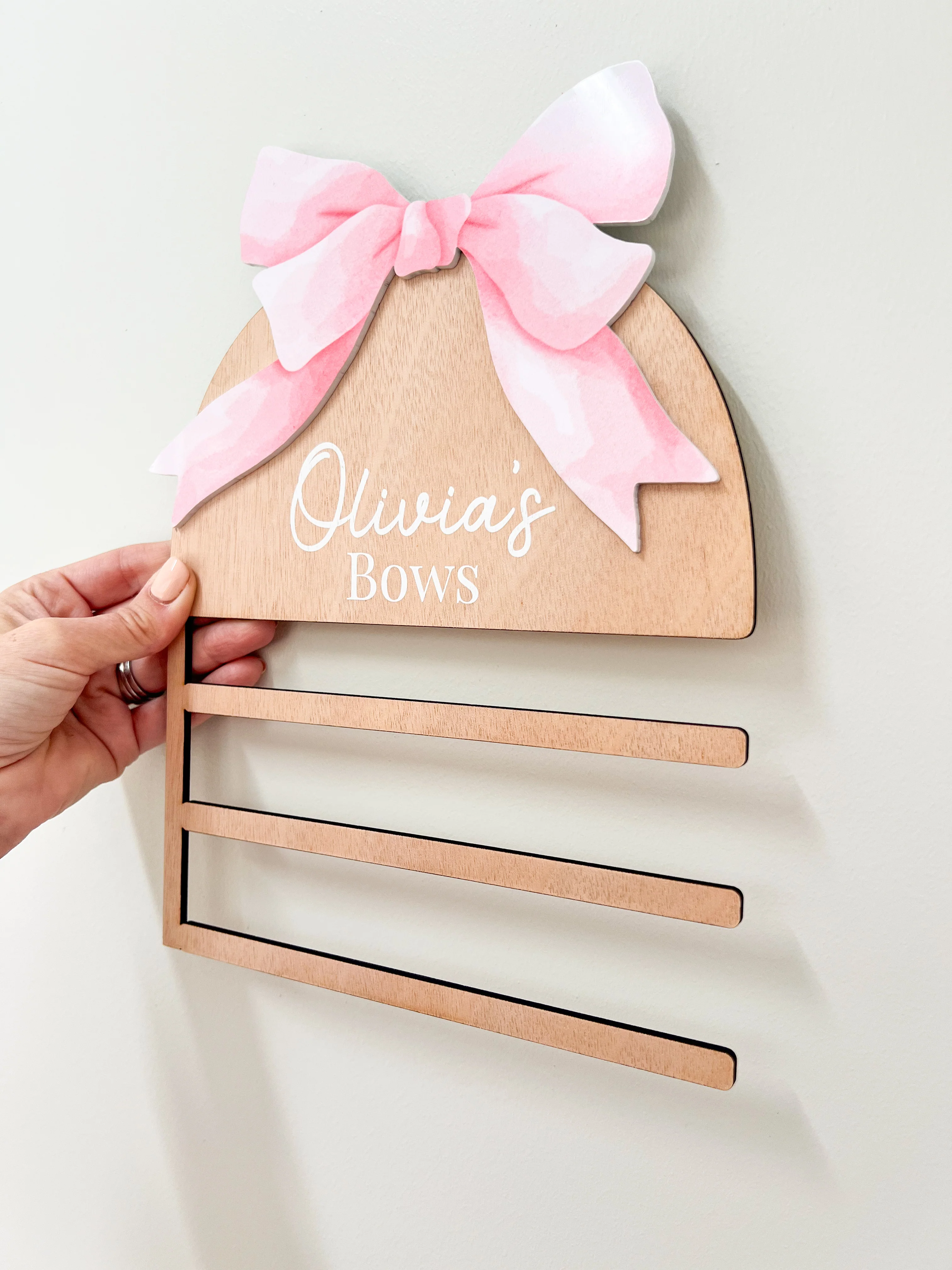 Organise and display your little girl's ribbons and bows with our new Wooden Bow Holder.